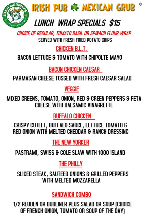 Full menu also available Wed - Sat 11:30 am - 3:30 pm